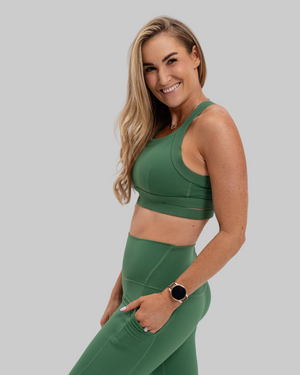 طقم ملابس رياضية 2 في 1 باللون الأخضر مع بلوزة وسراويل ضيقة