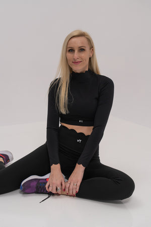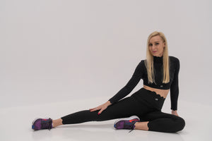 طقم رياضي فاخر باللون الأسود مكون من توب وسراويل ضيقة